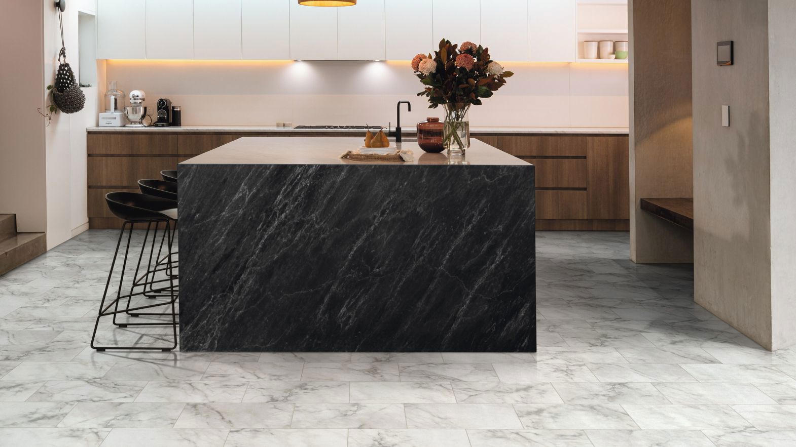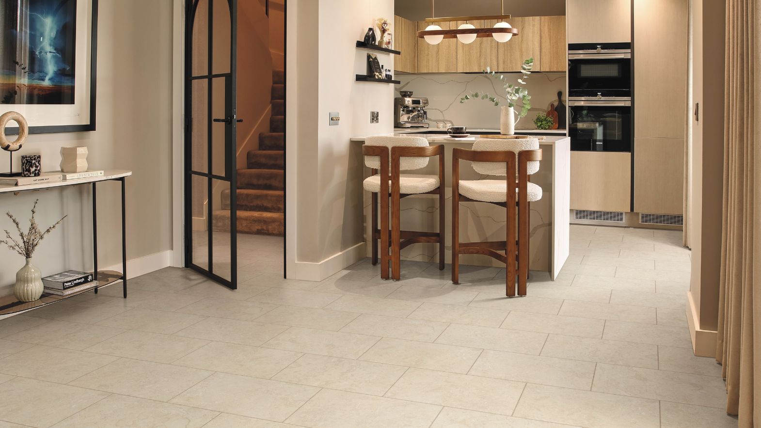 Karndean’s versatility means it’s easy to design a space that combines personal style with all the practicality and effortless maintenance that our busy modern lives need. Offering a wide range of stone inspired designs from slate, limestone, onyx and marble to concrete and geometric tiles, it’s great to know that every Karndean floor is suitable for kitchens and bathrooms. With a consistent tile thickness, you can even mix and match designs for a bespoke look.