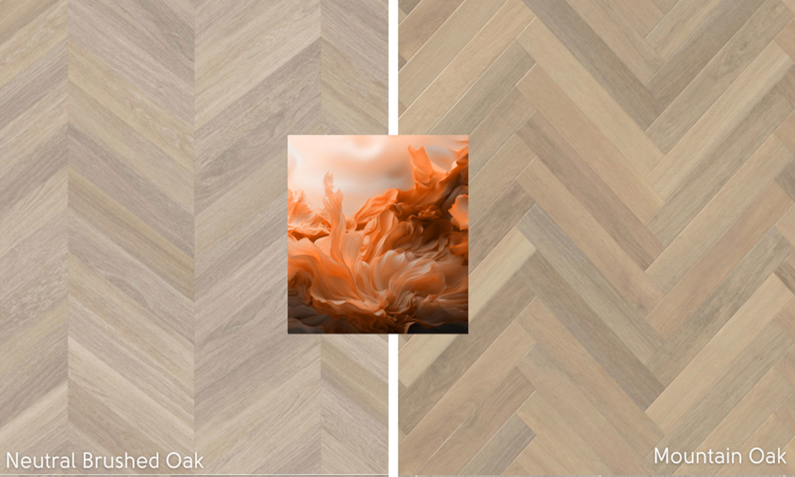Create depth with blocks of colour in a tonal palette of warm earthy shades, grounded with a foundation of neutral wood flooring in blonde beige hues such as Mountain Oak or Neutral Brushed Oak . For an extra layer of tactile texture, opt for a herringbone or chevron laying pattern to highlight the incredible natural variation in these designs and give your home a sense of space and flow.