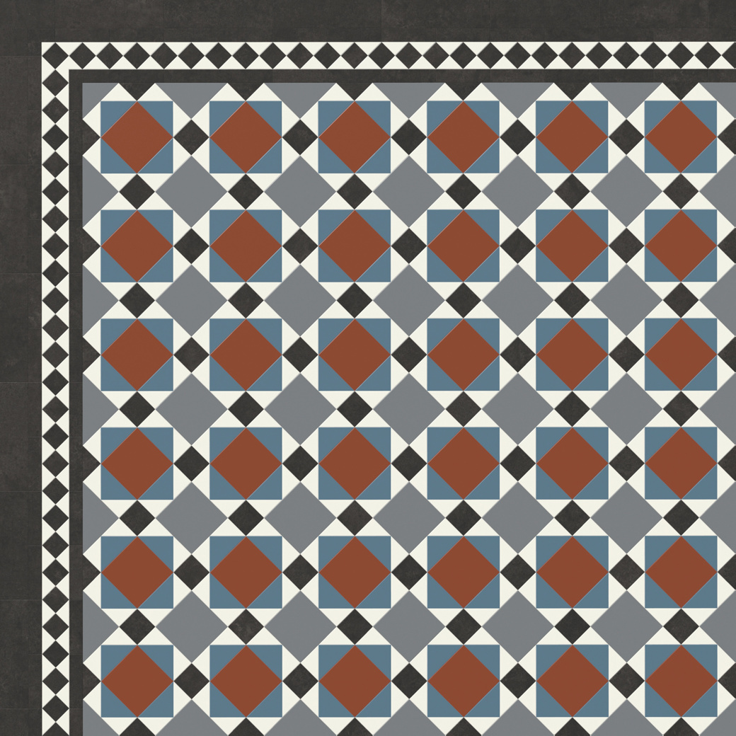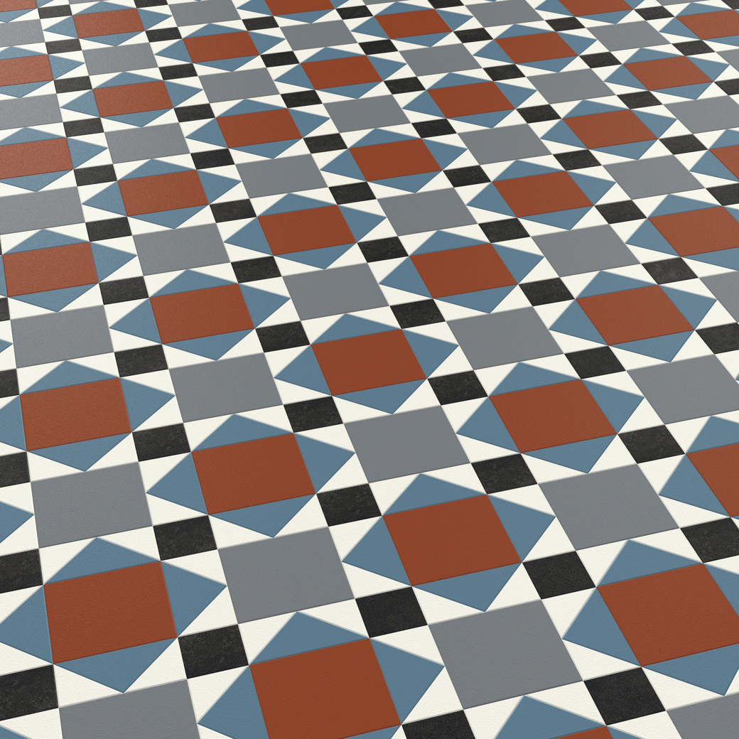 In a harmonious colour combination of Dove Grey, Terracotta, Lace, Azure and Nero, Mayfair is an iconic pattern formed of square and triangular tiles. Traditionally found in the entrance halls of Victorian homes, this design oozes personality with a warm rich look full of character.